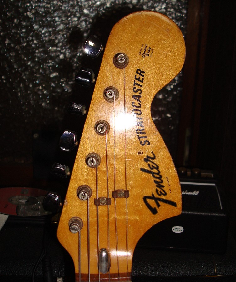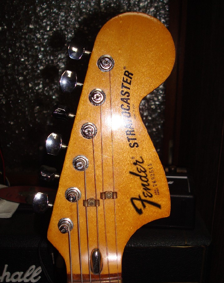 所有している1984-86のFender Japanのヘッド形状は比較的1976年後期に近い。がペグ穴の間隔が微妙に狭く、F-Keyを取り付けるのに隣どうしでサイド線が整列しない。