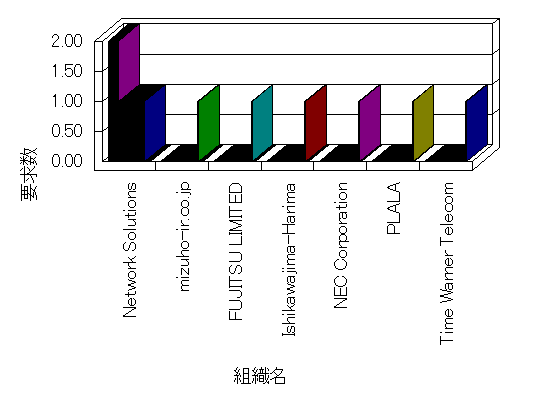 組織ユーザーにインターネット接続を提供する、商用または非営利団体、学術・行政機関などの、インターネット ドメイン で識別される団体や組織です。Microsoft Site Server Analysis は同じ組織に登録されたすべてのドメインを 1 つの組織としてグループ化します。ドメインがデータベースで使用できない場合は、1 つのインターネット ドメインが 1 つの組織を識別するのに使用されます。