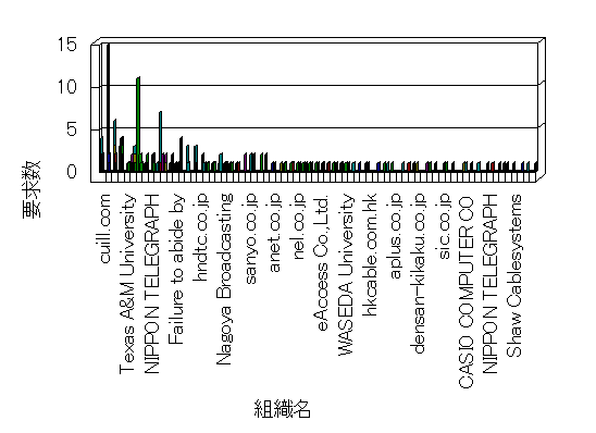 組織ユーザーにインターネット接続を提供する、商用または非営利団体、学術・行政機関などの、インターネット ドメイン で識別される団体や組織です。Microsoft Site Server Analysis は同じ組織に登録されたすべてのドメインを 1 つの組織としてグループ化します。ドメインがデータベースで使用できない場合は、1 つのインターネット ドメインが 1 つの組織を識別するのに使用されます。
