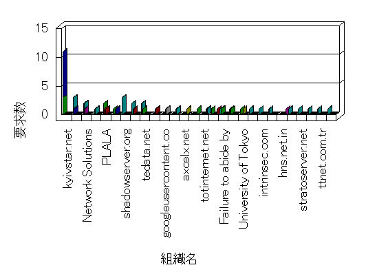 参照組織のサイトには、このサイトにリンクするページがあります。グラフでは、このサイトへのアクセス数に基づいた、上位 10 組織を示します。